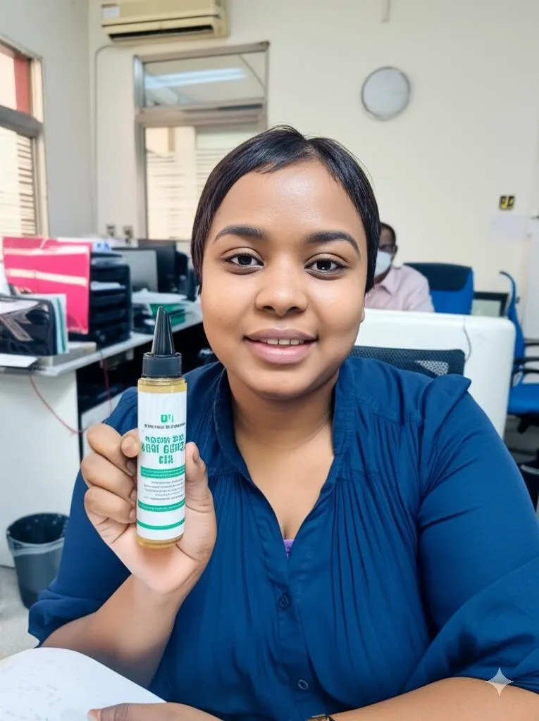"This oil is like magic in a bottle. I apply it every night with a light scalp massage, and honestly, my hair has never been this full. Even my husband noticed and asked what I was using 😂. I’m on my fifth bottle already!""
